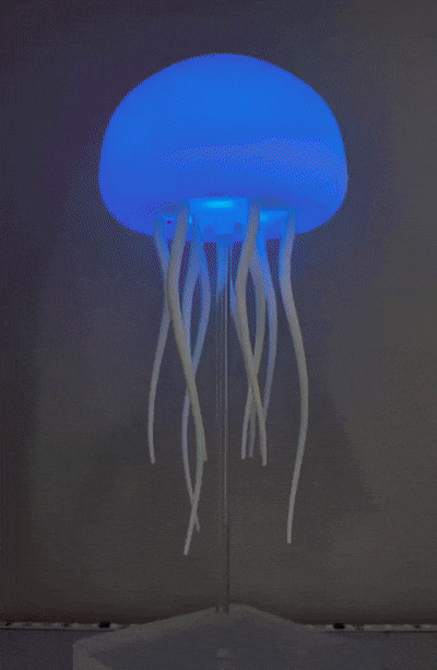 "La lámpara es hermosa. Las luces cambian de color y los tentáculos se mueven como si fuera una medusa real."